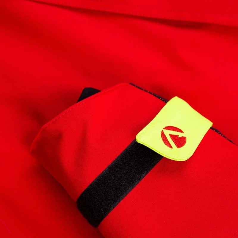 ・ジッパー上のストームフラップと防水ジッパー。さらに、耐久性のあるポップボタンを採用。