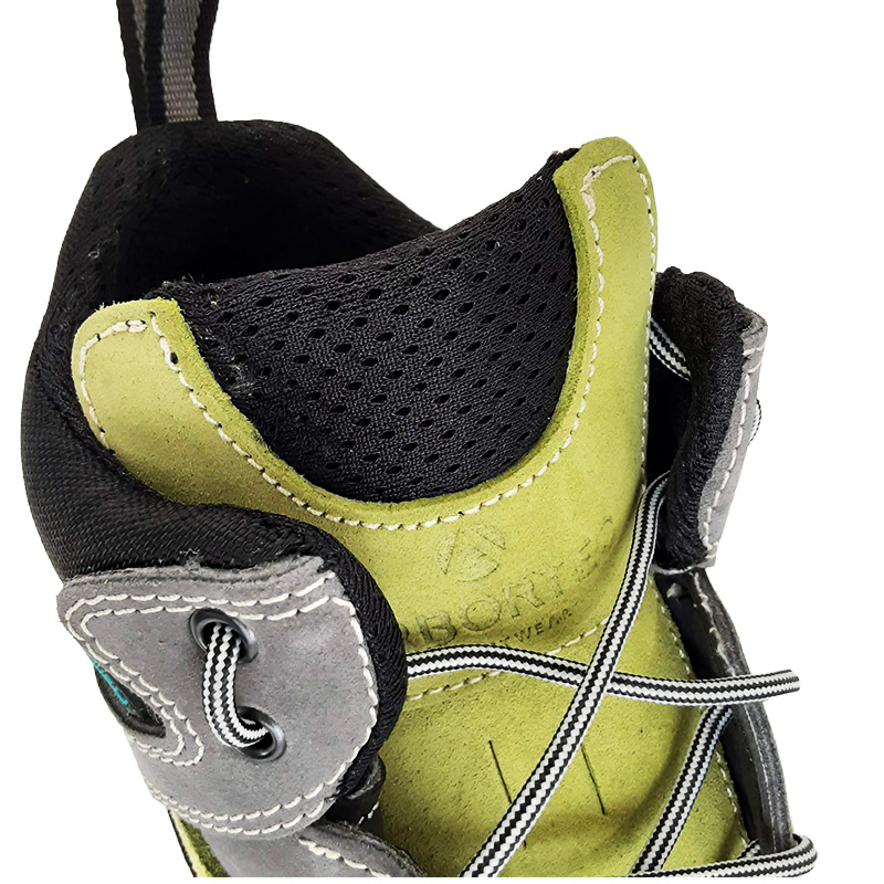 ・ライムグリーンのリバースレザーを使用した、汎用性の高いローカットのイタリア製パフォーマンスアクティビティ/クライミングブーツ。