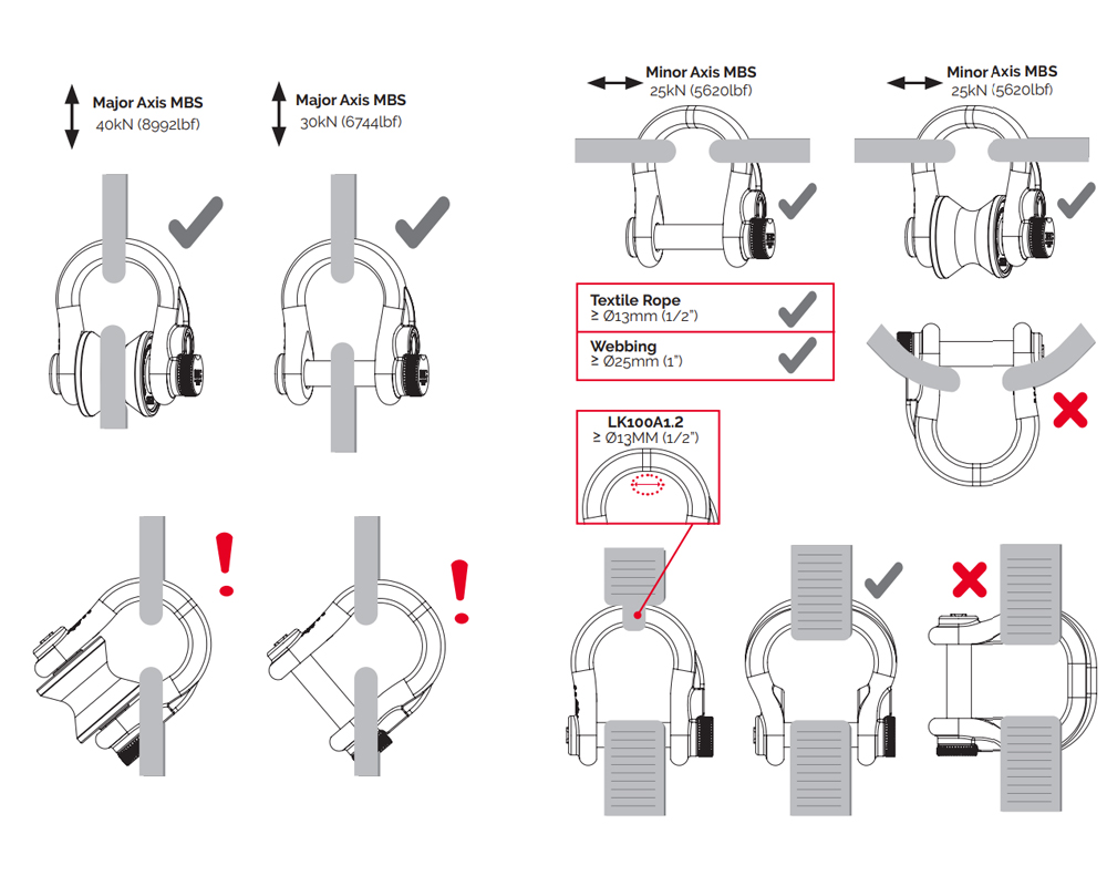 短軸MBSは25kN(5620lbf)、長軸MBSは30kN(6744lbf)で、プーリーホイールと併用すると40kN(8922lbf)になります。ウルトラリンクはCE認証を取得し、耐腐食性ステンレス鋼と軽量アルミニウム製シーブで製造されています。弓形のフレーム形状は、特に短軸方向への正しい荷重を促し、高視認性のシーブは、落下時にホイールの位置を確認するのに役立ちます。