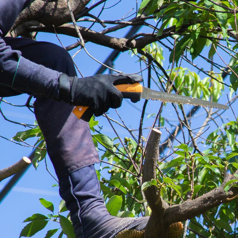 従来のノコでは難しい密集した枝の剪定も、スリムなノコ刃で枝元からしっかり切断できます。