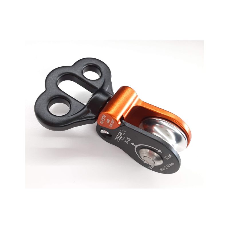 ロープの流れに合わせてスイベル部分が自動で動き、捻じれの負荷を防ぎます。